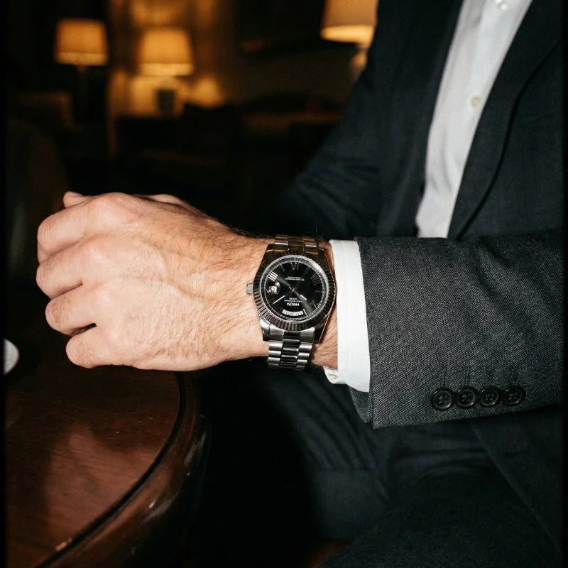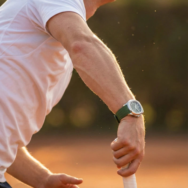 Para pulseiras de couro ou borracha, o fecho é com ajuste da própria pulseira do relógio.