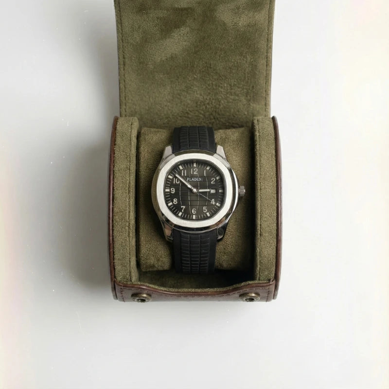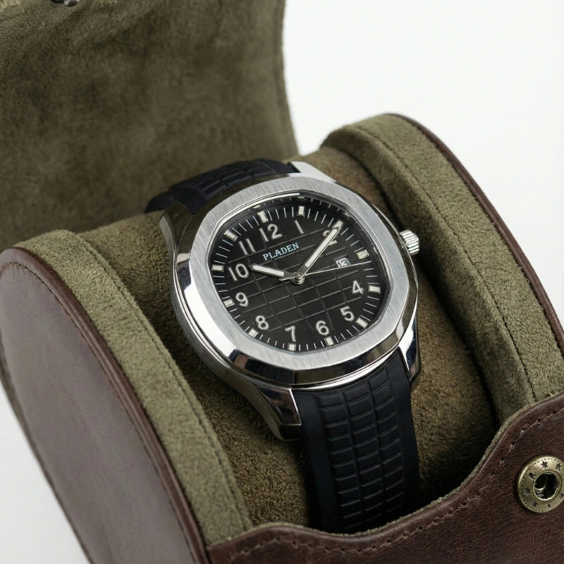 Inspirado nas linhas icônicas, o Aquattico combina o melhor da funcionalidade esportiva com uma estética refinada. Sua pulseira em borracha texturizada oferece conforto e resistência, enquanto a caixa robusta em aço inoxidável transmite presença e solidez.